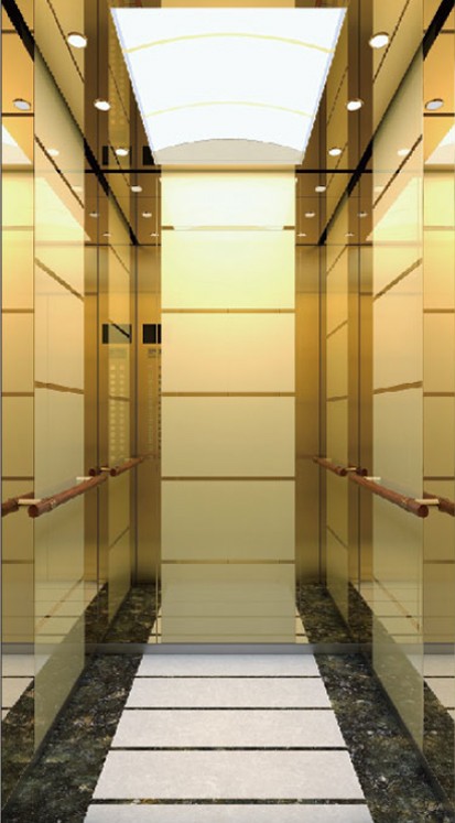 轎壁:貼膜板,玫瑰金鏡面雕刻不銹鋼